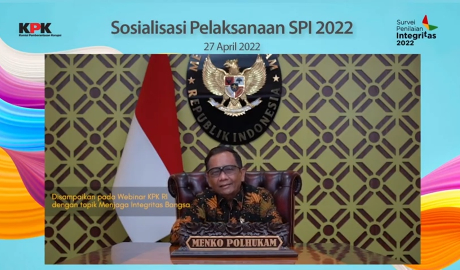“Ini tidak ada hubungan dengan penilaian kalangan tertentu bahwa pemerintahan menyerah dan gagal, karena sudah banyak kemajuan yang kita capai, dan Pemilu 2024 sudah pasti dilakukan dan tidak ada penundaan,” demikian petikan pesan yang disampaikan Menko Polhukam saat menjadi keynote speaker Menjaga Integritas Bangsa dalam webinar Sosialisasi Survei Penilaian Integritas (SPI) yang diselenggarakan KPK, Rabu (27/04/22).