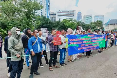 Massa memulai aksi di area Patung Kuda pada pukul 10.30 WIB, dilanjutkan aksi di Senayan pada pukul 13.00 WIB pada Selasa (7/6/2022). Penyampaian aspirasi itu berlangsung tertib hingga bubar.