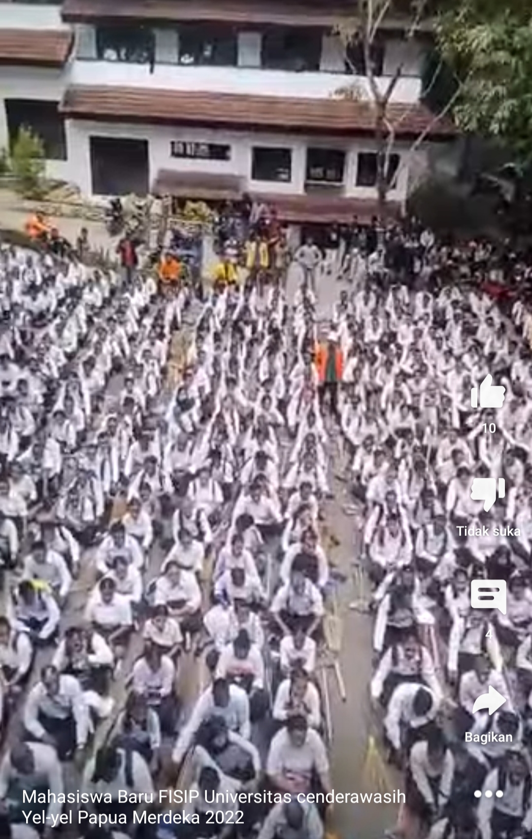 Jakarta – Video amatir yang memperlihatkan puluhan mahasiswa baru sedang mengikuti kegiatan pra kampus atau orientasi mahasiswa meneriakkan yel-yel Papua Merdeka beredar. Video pendek tersebut viral di media sosial dan disinyalir merupakan kegiatan perkenalan kampus di Fakultas Ilmu Sosial dan Ilmu Politik Universitas Cenderawasih, Papua.