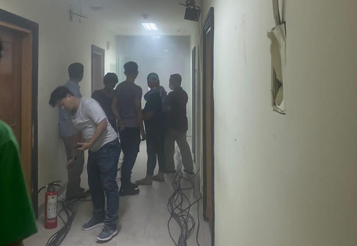 Pekerja yang sedang melakukan pembongkaran, Martin juga memberikan bantahan bahwa tak ada kebakaran seperti yang diberitakan. Kata dia, tidak api yang membakar di ruangan Baintelkam.
