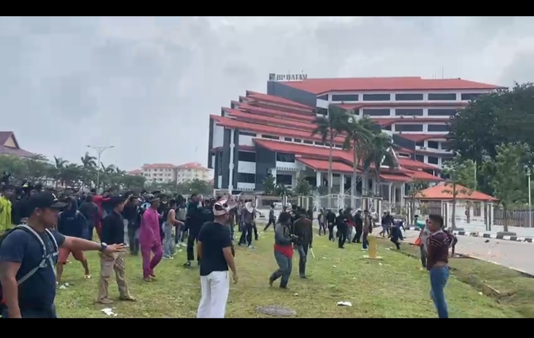 Batam – Pendemo warga Rempang yang tolak relokasi 16 Kampung Tua Melayu Rempang Galang, Senin (11/9/2023) di Kantor BP Batam, kembali brutal dan rusuh.
