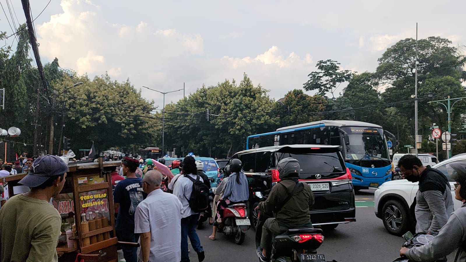 “Kasih jalan, jangan bikin macet,” celetuk pengguna jalan.
